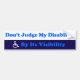 Invisible Disability bumper sticker. Don't Judge My DIsability By Its Visibility bumper sticker. Sticker for disabled Americans who don't want to be judged because they suffer from a disability that isn't easily seen.