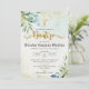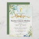 Invita a tus seres queridos a un Bautizo católico con esta invitación de Bautizo, adornada con hojas verdes y una cruz dorada. Este es un diseño religioso y elegante.
