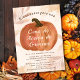 Invita a tus amigos y familiares a celebrar el Día de Acción de Gracias con esta encantadora Invitación para Cena de Acción de Gracias con Calabazas y Tonos Otoñales en español. El diseño presenta una hermosa combinación de caligrafía elegante y letras en bloque estilizadas, con una gran calabaza naranja dibujada a mano en el centro, que lleva la frase 'Cena de Acción de Gracias.' Delicadas ramas con hojas otoñales enmarcan la invitación sobre un elegante fondo crema. Esta plantilla editable te permite personalizar completamente el texto según tus necesidades. La parte posterior de la tarjeta muestra cuatro pequeñas calabazas sobre el mismo fondo floral crema, añadiendo un toque encantador. Reúne a tus seres queridos para una festiva cena de Acción de Gracias con esta invitación otoñal, elegante y adorable.