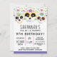Célébrez avec un crâne à sucre coloré / Dia de la Muerte thème! Dispose d'adorables crânes de sucre, avec coordination arrière - plan couleur. Faits saillants de rose, bleu, vert, orange et jaune partout.