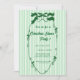 Invitez famille et amis avec style grâce à cette invitation de fête de Noël verte et fantaisiste pour un dîner de Noël. Avec son fond rayé ludique et son cadre à nœud festif, ce design charmant donne le ton parfait pour une célébration de vacances conviviale. Personnalisez avec les détails de votre événement pour créer un souvenir mémorable pour vos invités.