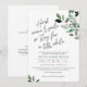 This invitation is flexible for either a Drive By or Outdoor Bridal Shower and allows guests to choose what they're comfortable with. The invitation features a spray of green branches with a variety of green shades. It can also be used for a Couple's Shower, Wedding Shower, or Engagement Celebration.