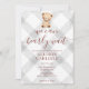 Invitation 020 Fog Grey Teddy Bear Gingham Baby Shower
