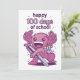 Design mignon avec un axolotl portant un sac à dos et tenant un grand stylo avec la citation "Heureux 100 jours d'école". Joyeux 100ème jour d'école ou de maternelle.