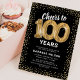 Élégante invitation à la fête du 100e anniversaire avec un arrière - plan noir élégant qui peut être changé à n'importe quelle couleur, parties scintillant brillante or, cent ballons d'hélium or, et un modèle de texte de célébration d'anniversaire moderne qui est facile à personnaliser.