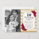 Invitation 10e anniversaire avec photo - Or Blanc Rouge