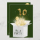Ballons d'or avec étincelles et rubans dans une boîte blanche sur arrière - plan vert foncé pour 10ème anniversaire. Le texte de la zone peut être modifié. La couleur Arrière - plan peut être modifiée.