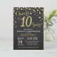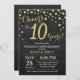 10e anniversaire de mariage Invitation tableau noir et or. Dixième anniversaire de mariage. Fond de diamant à paillettes noires et or. Confettis dorés. Anniversaire adulte. Fête d'anniversaire pour homme ou femme. Pour une personnalisation plus poussée, veuillez cliquer sur le bouton "Personnaliser" et utiliser notre outil de conception pour modifier ce modèle.