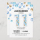 Invitation 11e fête d'anniversaire, Bleu et Ballons d'or