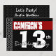 Invitation 13e anniversaire moderne pour lui Rouge Blanc Noir