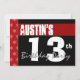 Invitation 13e anniversaire moderne pour lui Rouge Blanc Noir