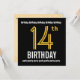 Invitation 14e fête d'anniversaire Gold moderne et Noir