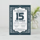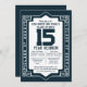 Célébrez tous les souvenirs amusants grâce à cette invitation de style Art déco bleu marine, "Classe de "Réunion du lycée de 15 ans". Inclut le spot pour 2 jours d'événements.
