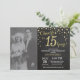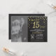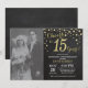 15e Anniversaire de Mariage avec photo personnalisée. Invitation Ardoise Noir et Or. Quinzième Anniversaire de Mariage. Fond Pailleté Diamant Noir et Or. Confettis Dorés. Anniversaire Adulte. Fête d'anniversaire pour homme ou femme. Pour une personnalisation supplémentaire, veuillez cliquer sur le bouton "Personnaliser" et utiliser notre outil de conception pour modifier ce modèle.