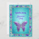 Invitation 15e anniversaire violet turquoise bijoux Papillon