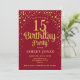 Invitation de fête du 15e anniversaire. Design élégant en or rouge et faux parties scintillant. Comprend des polices de caractères et des confettis stylisés. Message-moi si vous avez besoin d'âge personnalisé.
