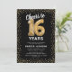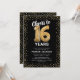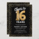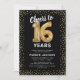 Élégante invitation à la fête du 16e anniversaire avec un arrière - plan noir élégant qui peut être changé à n'importe quelle couleur, parties scintillant brillante or, seize ballons d'hélium or, et un modèle de texte de célébration du 16e anniversaire moderne qui est facile à personnaliser.