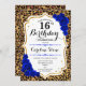 Invitation du 16e anniversaire. Elégant design blanc bleu royal avec faux or parties scintillant. Caractéristiques leopard cheetah poster de animal, police de script et saphir bleu roses. Parfait pour une soirée d'anniversaire élégante. Peut être personnalisé dans n'importe quelle année! Message-moi si vous avez besoin d'une personnalisation plus poussée.