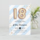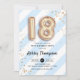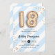 18e anniversaire de fête d'invitation. Design élégant en or de parties scintillant imitation avec rayures bleu et blanc d'aqua turquoise. Carte Invitation avec ballons numéro or 18, police de script avec confetti. Parfait pour une élégante dix-huitième célébration anniversaire. Message-moi si vous avez besoin d'âge personnalisé.
