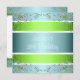 Tous les événements, les célébrations, les annonces et les invitations aux fêtes d'anniversaire. Convient à tous les anniversaires et événements d'âge. Rsvp est disponible sur demande dans le même style. Belle garniture en ruban métallique bleu et vert et bijoux en métal floral argenté sur blanc.