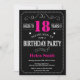Invitation 18e anniversaire Hot rose et Black Typographie. Tableau de bord. Arrière - plan noir et blanc. Anniversaire adulte. Hommes ou Femmes Anniversaire. Enfants Garçon ou fille Ado Anniversaire adolescent Invitation . 13ème 15ème 16ème 18ème 20ème 21ème 30ème 40ème 50ème 60ème 70ème 80ème 90ème 100ème. N'Importe Quel Âge. Pour plus de personnalisation, cliquez sur le bouton "Customiser" et utilisez notre outil de conception pour modifier ce modèle.