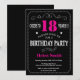 Invitation 18e anniversaire Hot rose noir Chalkboa