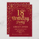 Invitation de fête du 18e anniversaire. Design élégant en or rouge et faux parties scintillant. Comprend des polices de caractères et des confettis stylisés. Message-moi si vous avez besoin d'âge personnalisé.