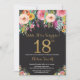 18ème invitation d'anniversaire de surprise florale pour des femmes. Fleur florale d'aquarelle. Noir et parties scintillantes d'or. Fleur rose, jaune, orange, pourpre. Anniversaire adulte. Pour davantage de personnalisation, cliquez sur svp la "personnaliser il" bouton et utilisez notre outil de conception pour modifier ce modèle.