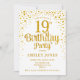 Invitation de fête du 19e anniversaire. Design élégant en or blanc et faux parties scintillant. Comprend des polices de caractères et des confettis stylisés. Message-moi si vous avez besoin d'âge personnalisé.