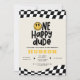1er anniversaire sourire face rétro noir, blanc et jaune super éclat cool invitation anniversaire.