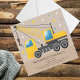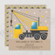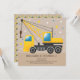 Invitation de 1er anniversaire avec un thème de camion de construction. L'invitation peut être personnalisée avec l'inclusion du nom de votre petit et des détails de la fête.