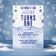 Oh quel plaisir, fête d'hiver 1er anniversaire enneigée. Personnalisez-le avec les détails de votre événement. Super pour un anniversaire de Noël dans la neige.