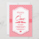 Invitation vos amis et proches avec cet éléphant rose et blanc, pois et chevrons rayé 1er anniversaire invitation.