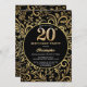20e anniversaire Black and Gold Floral Pattern Anniversaire Invitation. Pour plus de personnalisation, cliquez sur le bouton "Customiser" et utilisez notre outil de conception pour modifier ce modèle.