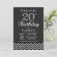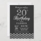 Invitation du 20e anniversaire avec Parties scintillant d'argent et de noir Chevron. Tableau de bord. Anniversaire adulte. Homme ou Femmes Anniversaire Invitation. Pour plus de personnalisation, cliquez sur le bouton "Customiser" et utilisez notre outil de conception pour modifier ce modèle.