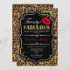 Invitation du 20e anniversaire. Elégant design noir blanc avec parties scintillant en or. Comprend un baiser de lèvres rouges, empreinte de léopard, confetti et police de script. Parfait pour une soirée d'anniversaire élégante. Vingt Fabuleux ! Message-moi si vous avez besoin d'une personnalisation plus poussée.