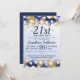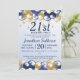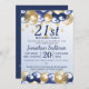 Une invitation à la fête du 21e anniversaire. Le design comprend des ballons bleu marine et or, des étoiles de gloire or et du texte bleu marine sur un arrière - plan bleu pâle dégradé. Un joli design invitant vos invités à se joindre à vous pour une fête du 21e anniversaire. Facile à customiser avec les détails de votre propre fête.