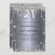 Une invitation moderne, élégante et glamour pour une fête de 21e anniversaire. Un arrière - plan faux argenté, décoré de poussière de parties scintillant. Personnalisez et ajoutez votre nom et les détails de votre fête. Le numéro 21 est écrit avec une police de style ballon, script.