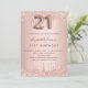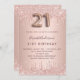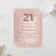 Une invitation moderne, élégante et glamour pour une fête de 21e anniversaire. Un arrière - plan d'or faux rose avec une élégante parties scintillant d'or faux rose goutte à goutte, la peinture goutte à goutte. Le nom est écrit avec un rose moderne de couleur or foncé à la main écriture style. Personnalisez et ajoutez les détails de votre fête. Le numéro 21 est écrit avec une police de style ballon, script.