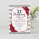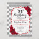 21e Invitation Anniversaire Elégant design blanc blanc argenté avec fausse parties scintillant. Bandes argentées et blanches aux roses rouges. Parfait pour une soirée d'anniversaire élégante.