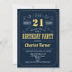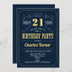 Invitation de fête du 21e anniversaire. Elégant design rétro bleu marine, or et blanc avec police de script. Salut à 21 ans ! Message-moi si vous avez besoin d'une personnalisation plus poussée.