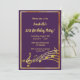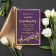 Faisons la fête et dansons ! Une carte d'invitation branchée et moderne pour 21e anniversaire. Arrière - plan classique violet foncé, avec cadre faux or et notes de musique, lettres dorées. Modèles pour vos informations de fête. Précédent : Couleur violet faux notes de musique dorée.