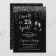 Invitation d'anniversaire de mariage de 25 ans. À 25 ans d'intervalle ! Design élégant en noir et argent. Caractéristiques verres à champagne, police de caractères script et confettis. Parfait pour une célébration élégante de 25 ans de mariage. Cartes d'invitation Zazzle imprimées ou modèle numérique à télécharger instantanément. Peut être personnalisé pour afficher n'importe quelle année ! Personnalisez avec vos propres détails.