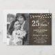 Invitation au 25e anniversaire du Mariage avec photo. Design élégant avec motif en bois rustique brun foncé. Fonctionne la police de script et les lumières de chaîne de fées. Salut à 25 ans ! Peut être personnalisé dans n'importe quelle année. Message-moi si vous avez besoin d'une personnalisation plus poussée.