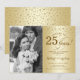 Invitation pour 25e anniversaire de mariage avec photo. Design élégant en or avec police script et confettis. Peut être personnalisé pour afficher n'importe quelle année de mariage. À 25 ans de mariage !