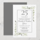 Avec une délicate verdure de jardin campagnard à l'aquarelle, cette invitation d'anniversaire chic peut être personnalisée avec vos informations de célébration d'anniversaire de mariage de 25 ans, avec un fond argenté au verso. Conçue par Thisisnotme©