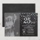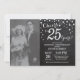 25e Anniversaire de Mariage avec photo personnalisée. Invitation Tableau Noir et Argent. Vingt-cinquième Anniversaire de Mariage. Fond Diamant Pailleté Noir et Argent. Confettis Argentés. Anniversaire Adulte. Fête d'anniversaire pour Femme ou Homme. Pour une personnalisation plus poussée, veuillez cliquer sur le bouton "Personnaliser" et utiliser notre outil de conception pour modifier ce modèle.