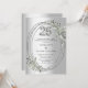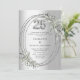 Un arrière - plan faux argenté. Un cadre argenté ovale orné de vert sage. Personnalisez et ajoutez vos noms, détails. Texte noir.
