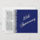 Ceci est une invitation élégante pour le 25e anniversaire de mariage en bleu marine avec des volutes en relief argenté sur papier argenté métallisé. Si vous avez besoin d'autres articles assortis dans ce design, ou si vous le souhaitez dans une couleur différente, veuillez envoyer votre demande par courriel à niteowlstudio@gmail.com. La carte RSVP assortie est présentée ci-dessous.