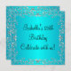 Invitation 25th Birthday Event Faire-part Party Elegant. Turquoise avec Trims Floral Argent et écriture noire. Customisez avec vos propres détails.